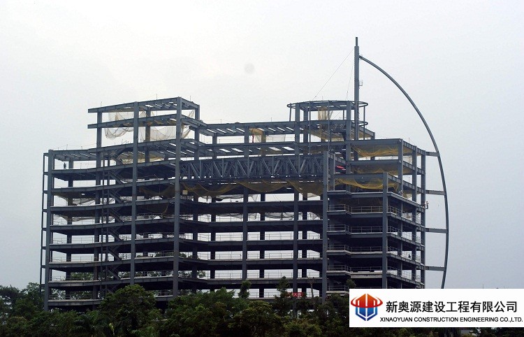 鋼結(jié)構(gòu)框架大樓施工。